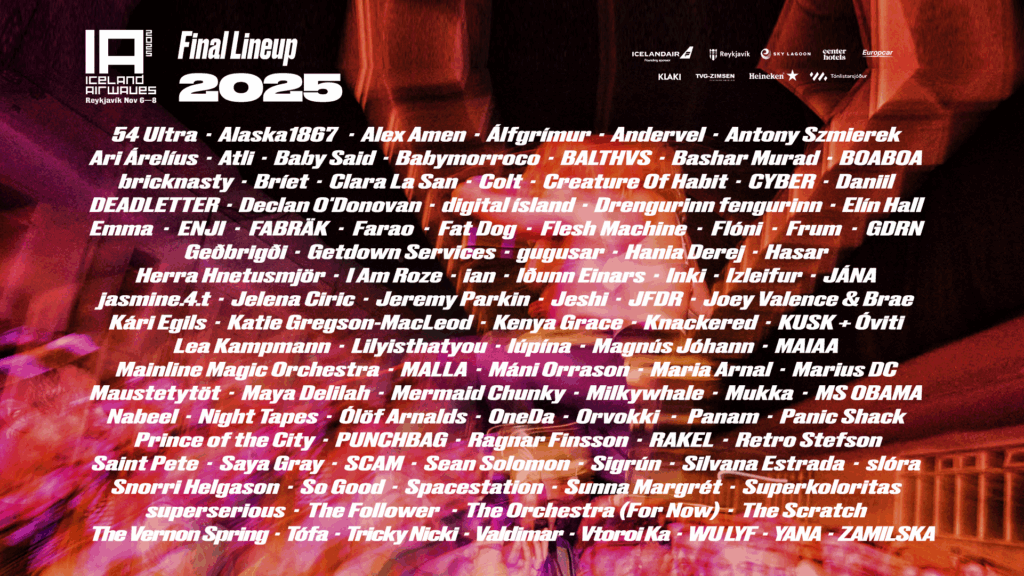 he wait is over! Our final lineup announcement of Iceland Airwaves 2025 is here, and it’s insane! Today we announce a fresh wave of 20 artists from near and far. Expect dreamy disco, dark pop, existential dance bangers, and perhaps a few emotional epiphanies.